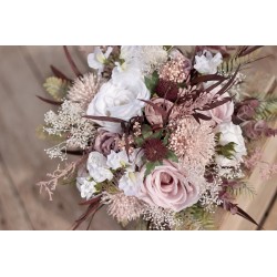 svatební kytice nepravidelného tvaru z umělých, sušených a konzervovaných květin