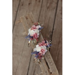 kovová květinová čelenka s umělými a konzervovanými květinami
