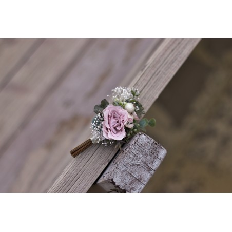 květinová klopa pro ženicha z umělých a konzervovaných květin