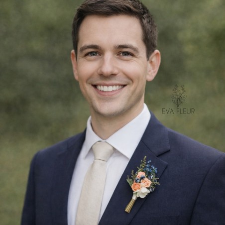 květinová klopa pro ženicha z umělých a konzervovaných květin