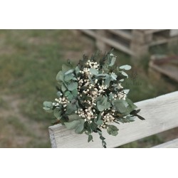 svatební kytice pro nevěstu z konzervované gypsophilly a barveného konzervovaného eukalyptu