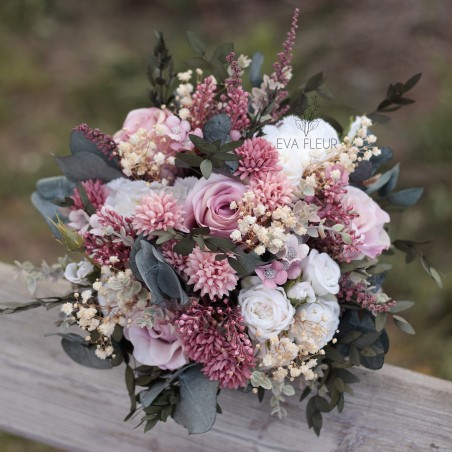 konzervovaný materiál: 2 druhy dobarvovaného eukalyptu, dobarvované stoebe, nevěstin závojprůměr kytice cca 25-28cm