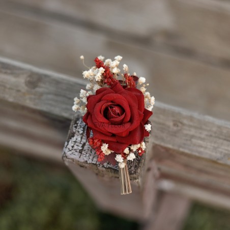 květinová klopa pro ženicha z umělých a konzervovaných květin
