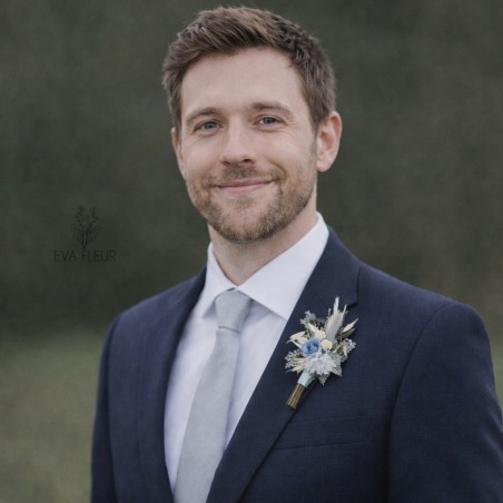 květinová klopa pro ženicha z umělých, sušených a konzervovaných květin