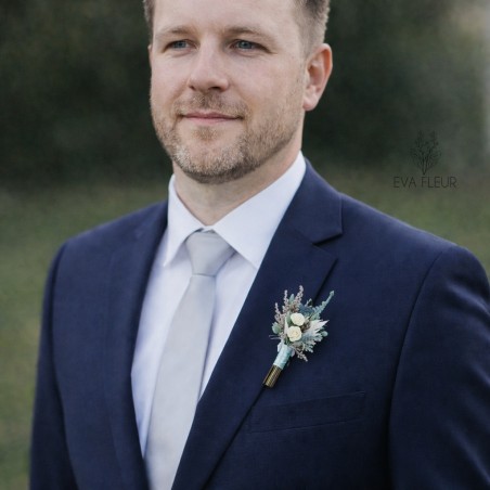 květinová klopa pro svědka z umělých, sušených a konzervovaných květin