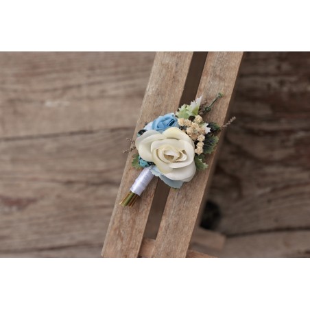 květinová klopa pro ženicha z umělých a konzervovaných květin