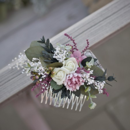 • Květinový hřeben do vlasů "Starorůžová pohádka"