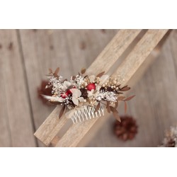 kovový květinový hřeben do vlasů v přírodním stylu, šířka nazdobeného hřebenu cca 13cm