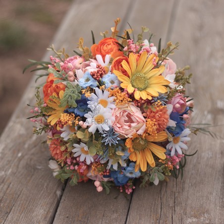 látkové květy, umělá zeleň, konzervovaný materiál: dobarvovaný eukalyptus, dobarvovaný nevěstin závoj dobarvované lepidium
