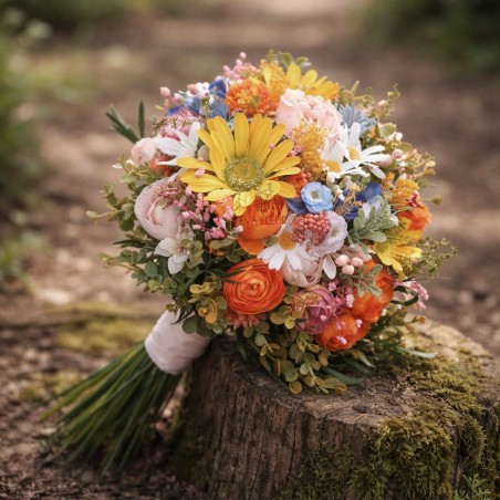 látkové květy, umělé přízdoby a zeleň, konzervovaný materiál: dobarvovaný eukalyptus, dobarvovaný nevěstin závoj, barvené lepidium, barvený ozoth