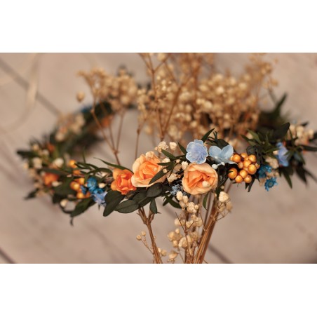 květinový věneček s umělými, sušenými a konzervovanými květinami