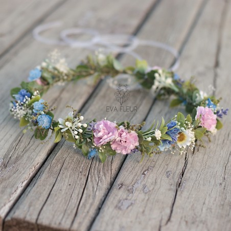 květinový věneček s umělými květinami a konzervovanými květinami (nevěstin závoj a stoebe)
