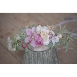 • Květinový věneček do vlasů "Šedo-růžový samet"