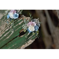 kovová vlásenka zdobená umělými a konzervovanými květinami